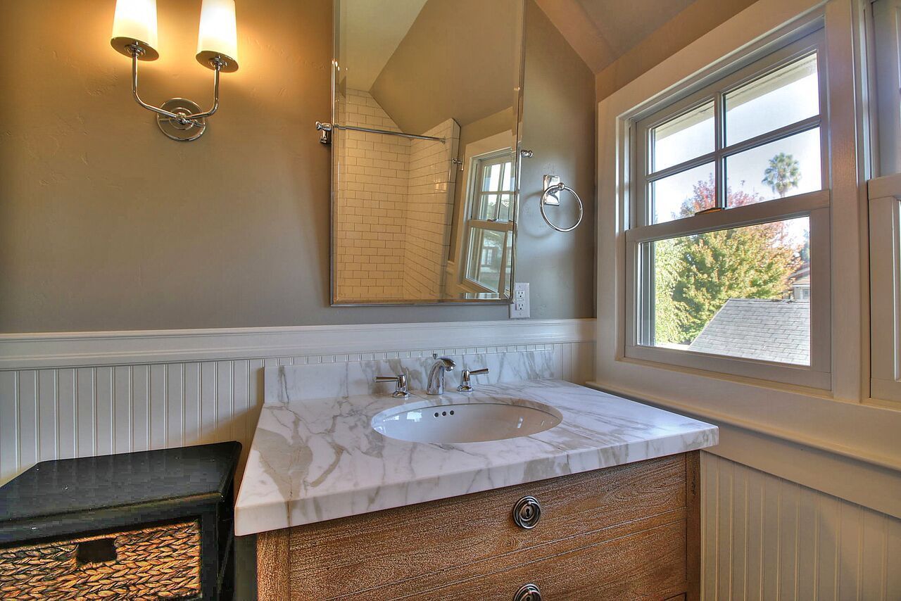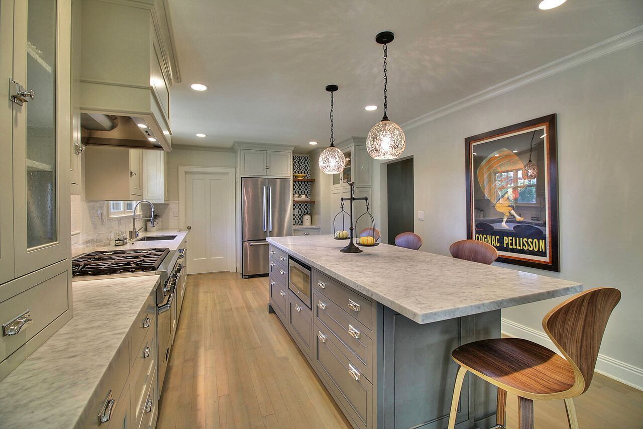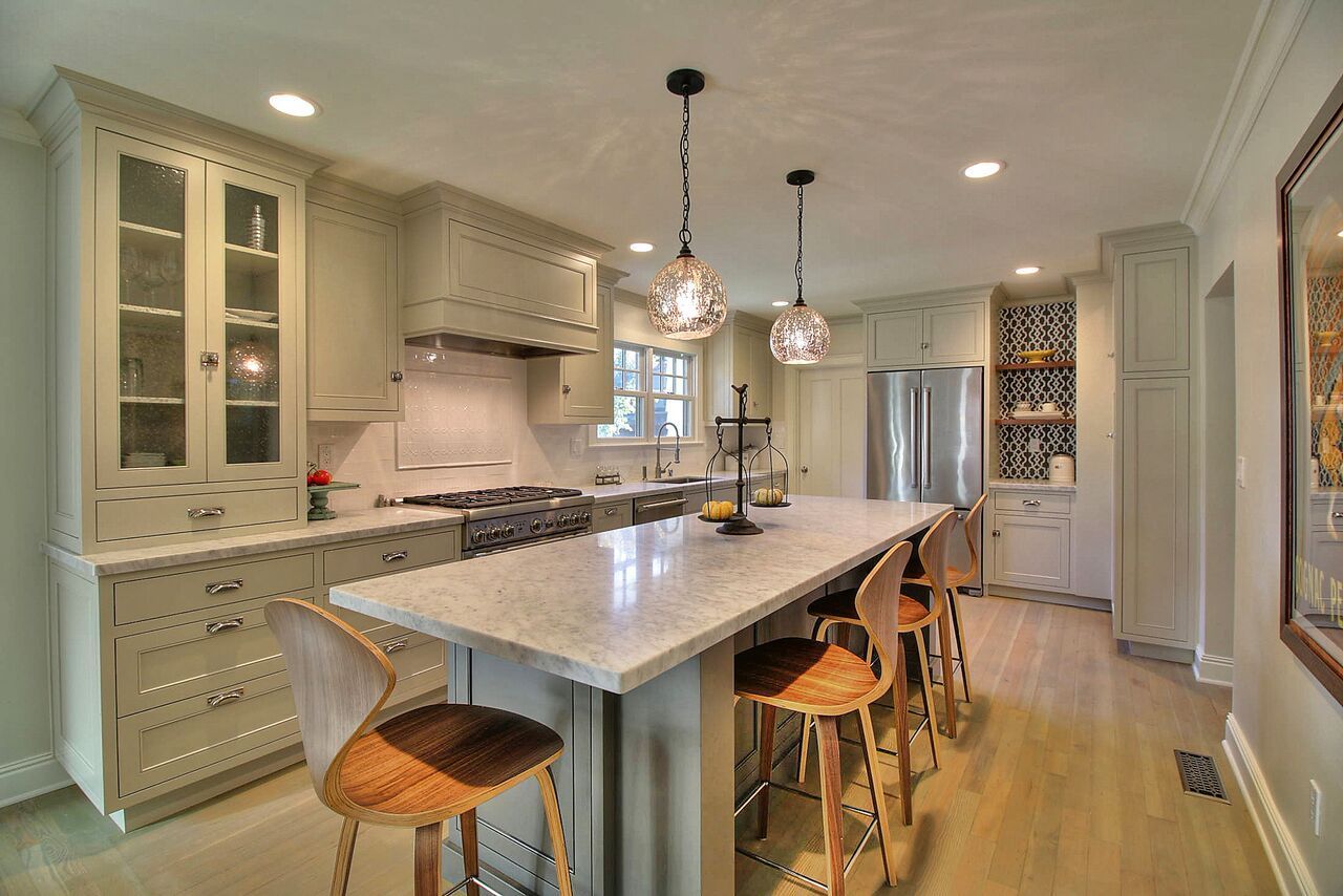 This new traditional style whole home remodel perfectly displays the refined, elegant aesthetic envisioned by our clients. Distinct features including high-end finishes and appliances, gorgeous Calcutta marble, custom whitewash floors with inlay borders, and artistic tile design all create a space that is both pristine and personal.