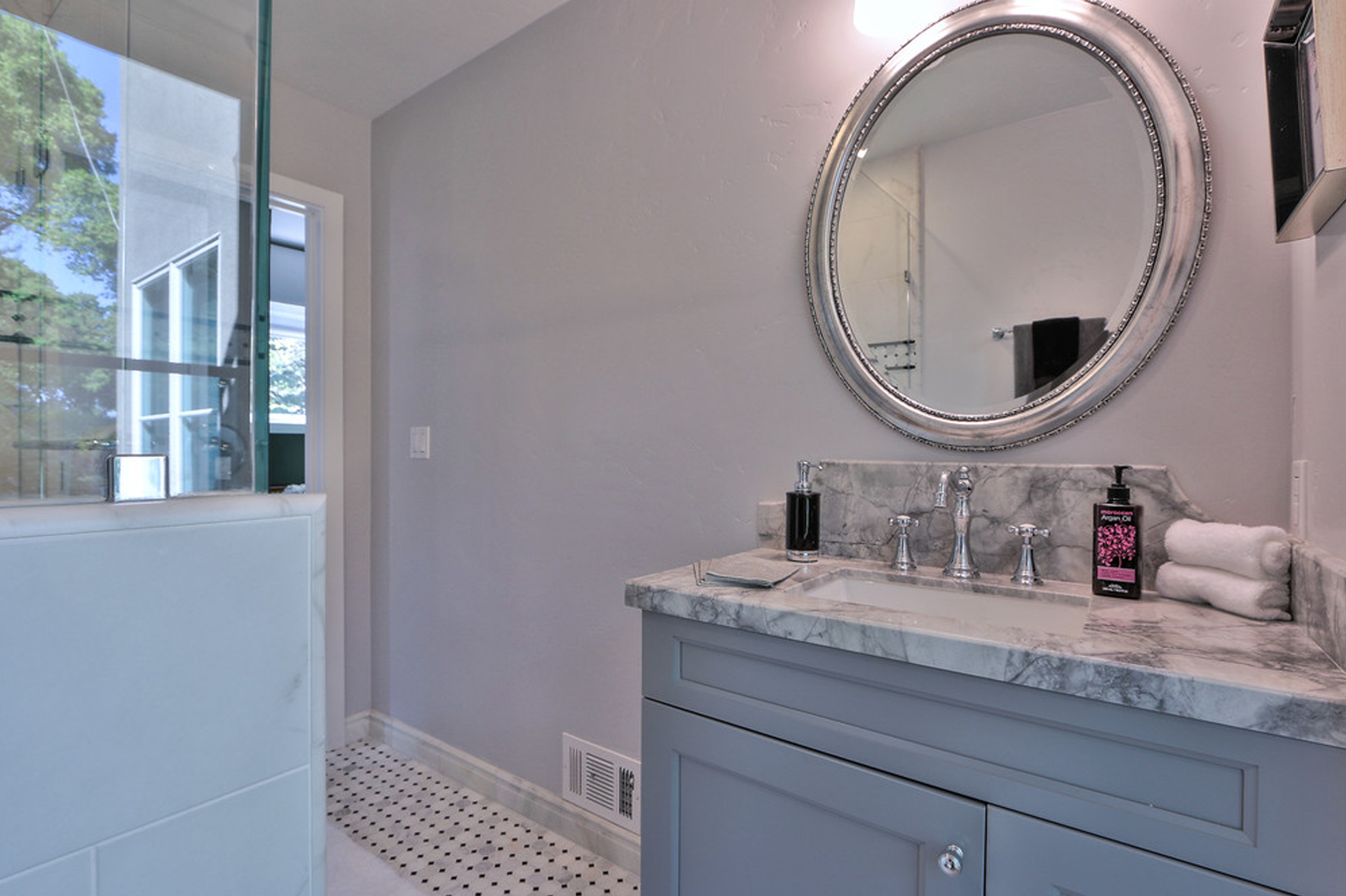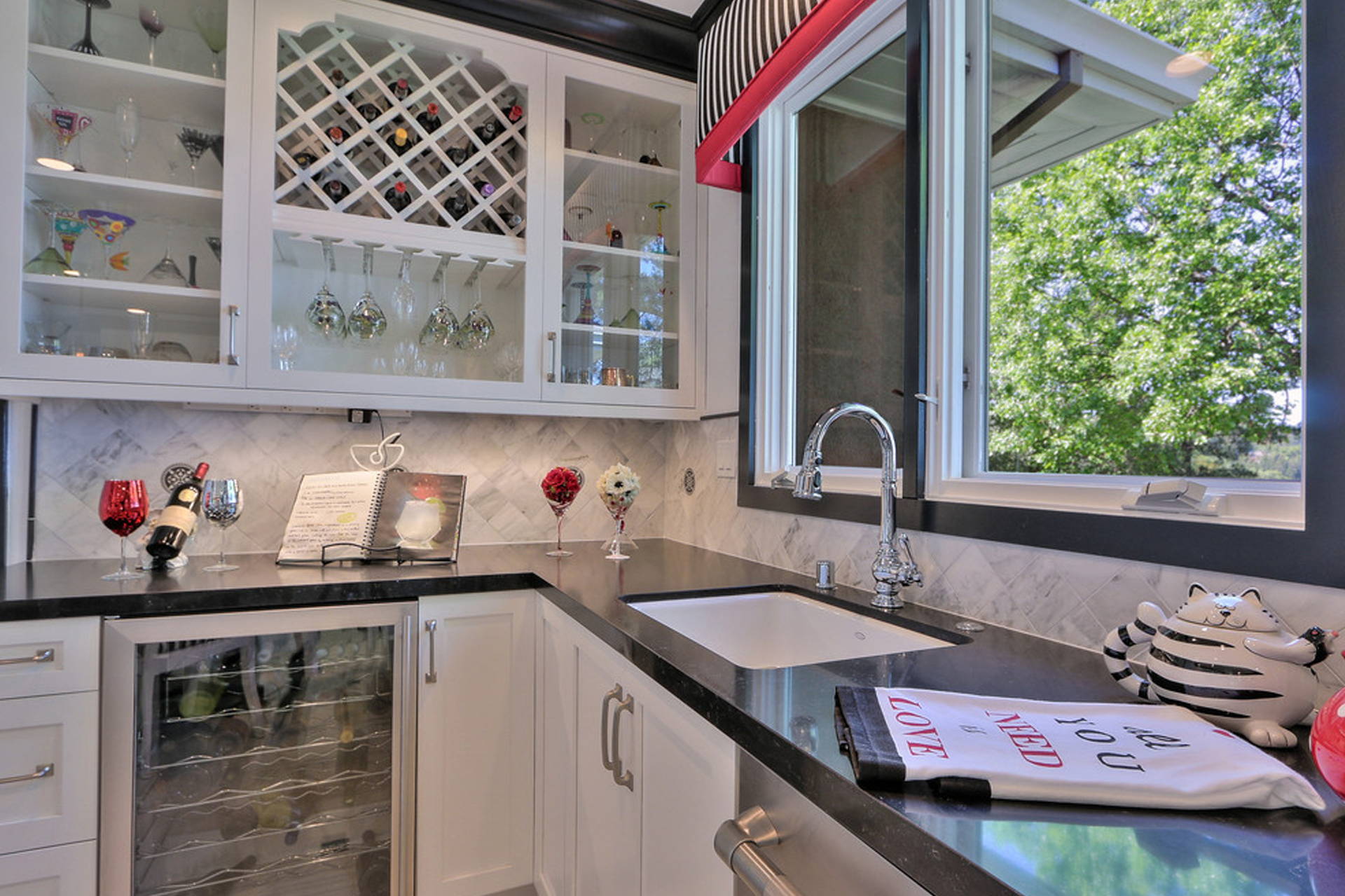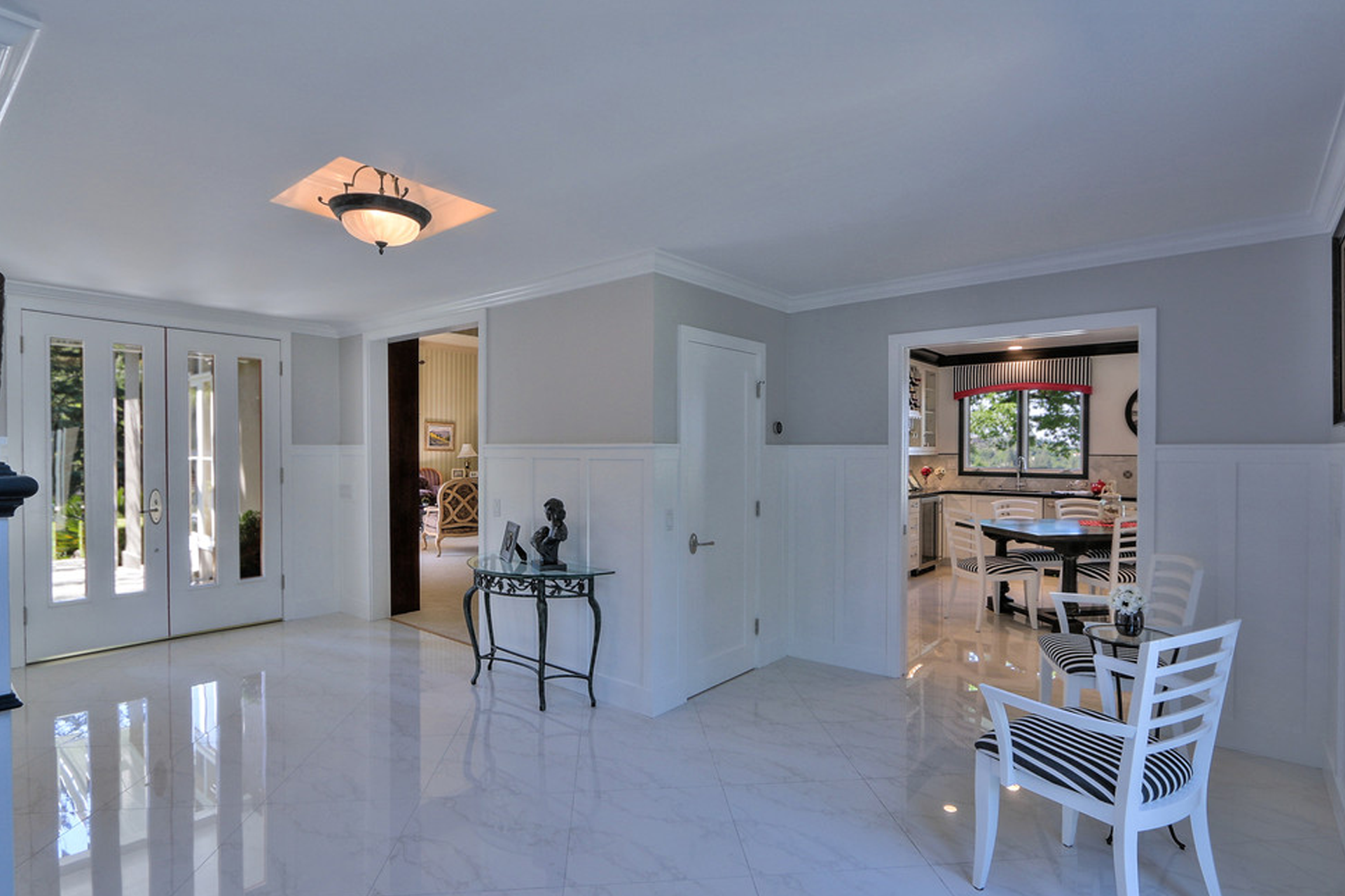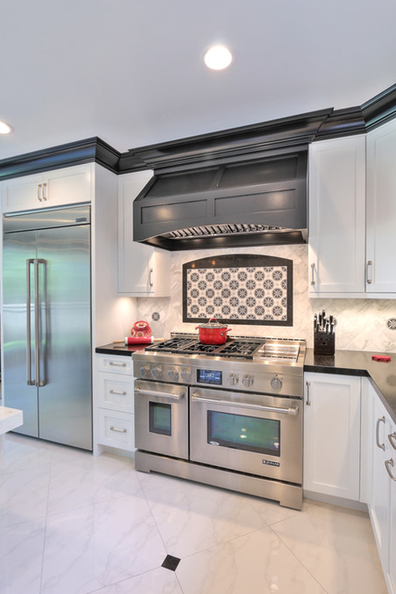 This elaborate first floor remodel included extensive kitchen, bathroom, and laundry room renovations. Structural elements were reworked to make way for our clients’ vision of a dazzling space paying gentle homage to Parisian design. The bold color scheme is dramatic yet charming and complimented by chic tile layouts and fashionable fixtures. We executed this concept so flawlessly that rather than a “welcome home” wish to our clients, it warranted a “bienvenue à la maison.”