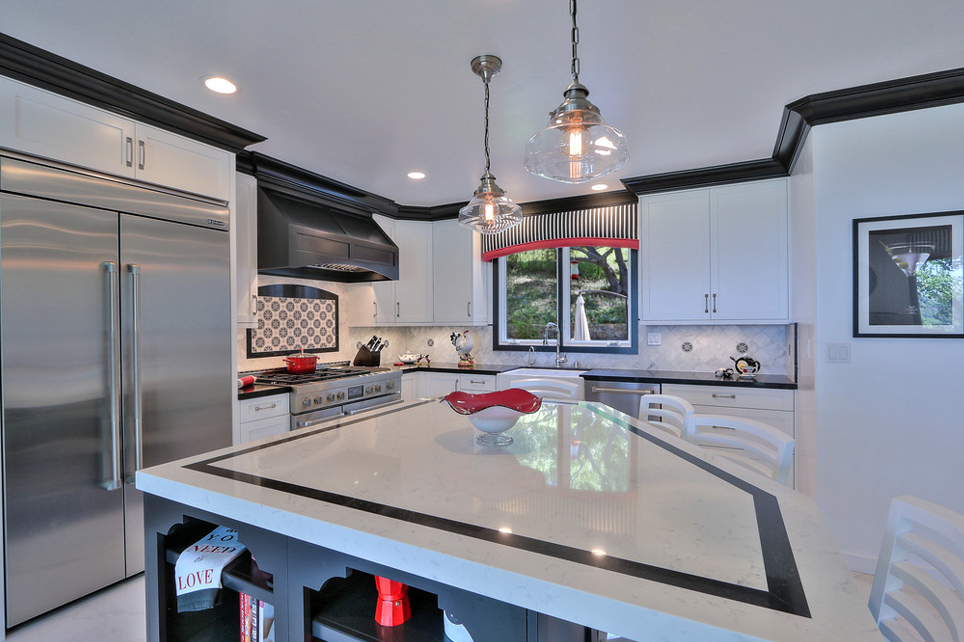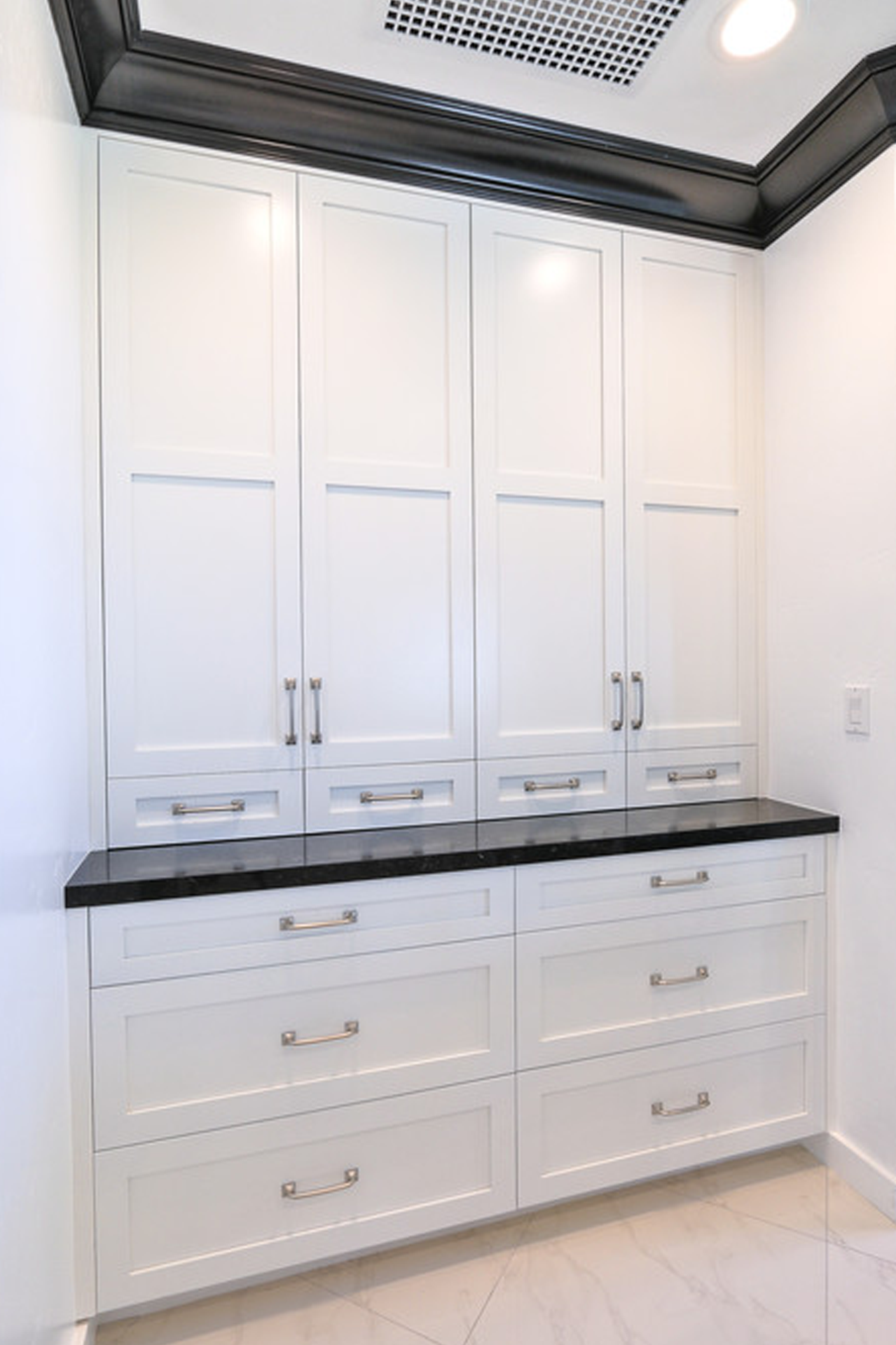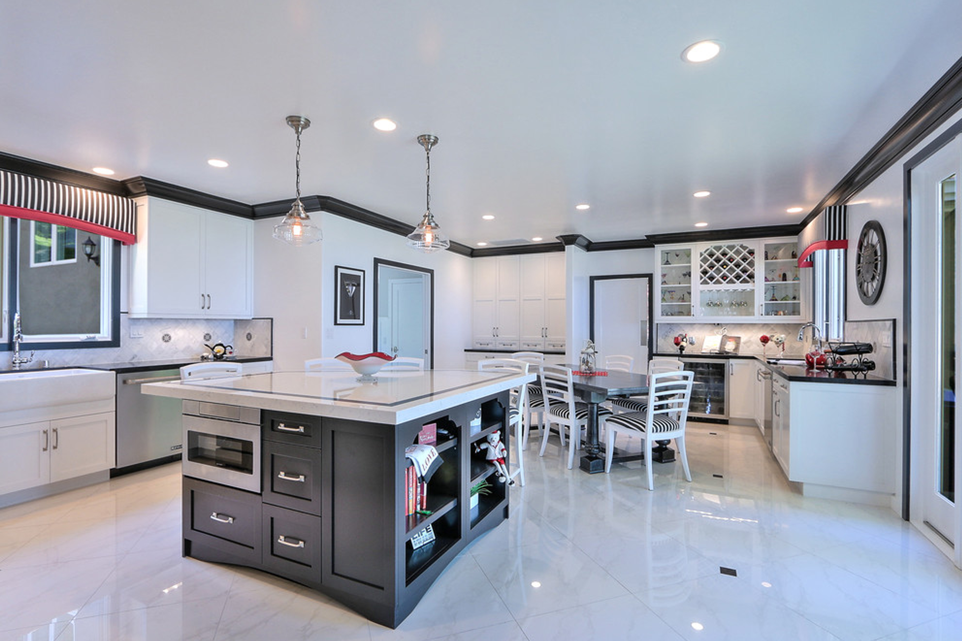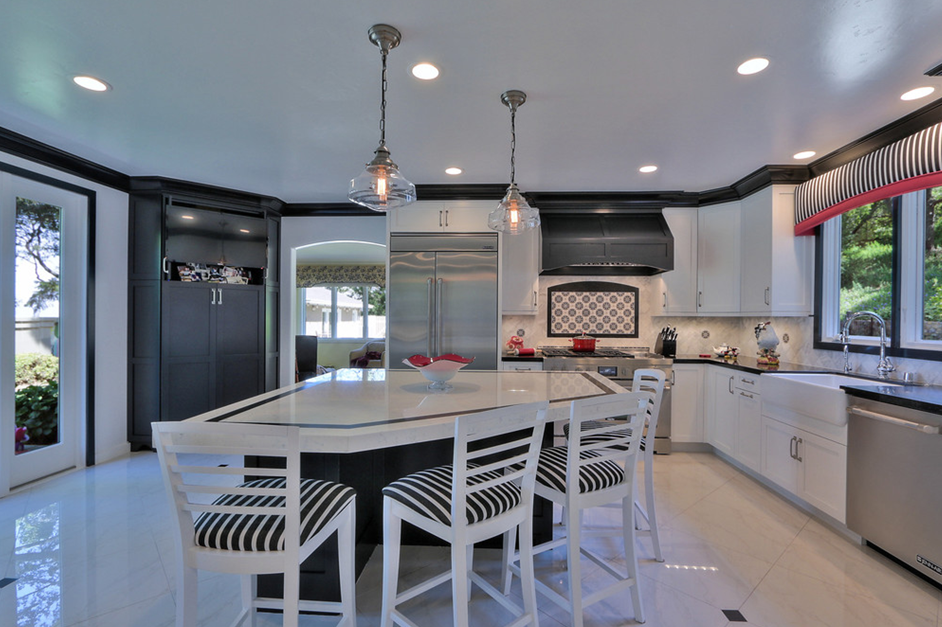This elaborate first floor remodel included extensive kitchen, bathroom, and laundry room renovations. Structural elements were reworked to make way for our clients’ vision of a dazzling space paying gentle homage to Parisian design. The bold color scheme is dramatic yet charming and complimented by chic tile layouts and fashionable fixtures. We executed this concept so flawlessly that rather than a “welcome home” wish to our clients, it warranted a “bienvenue à la maison.”