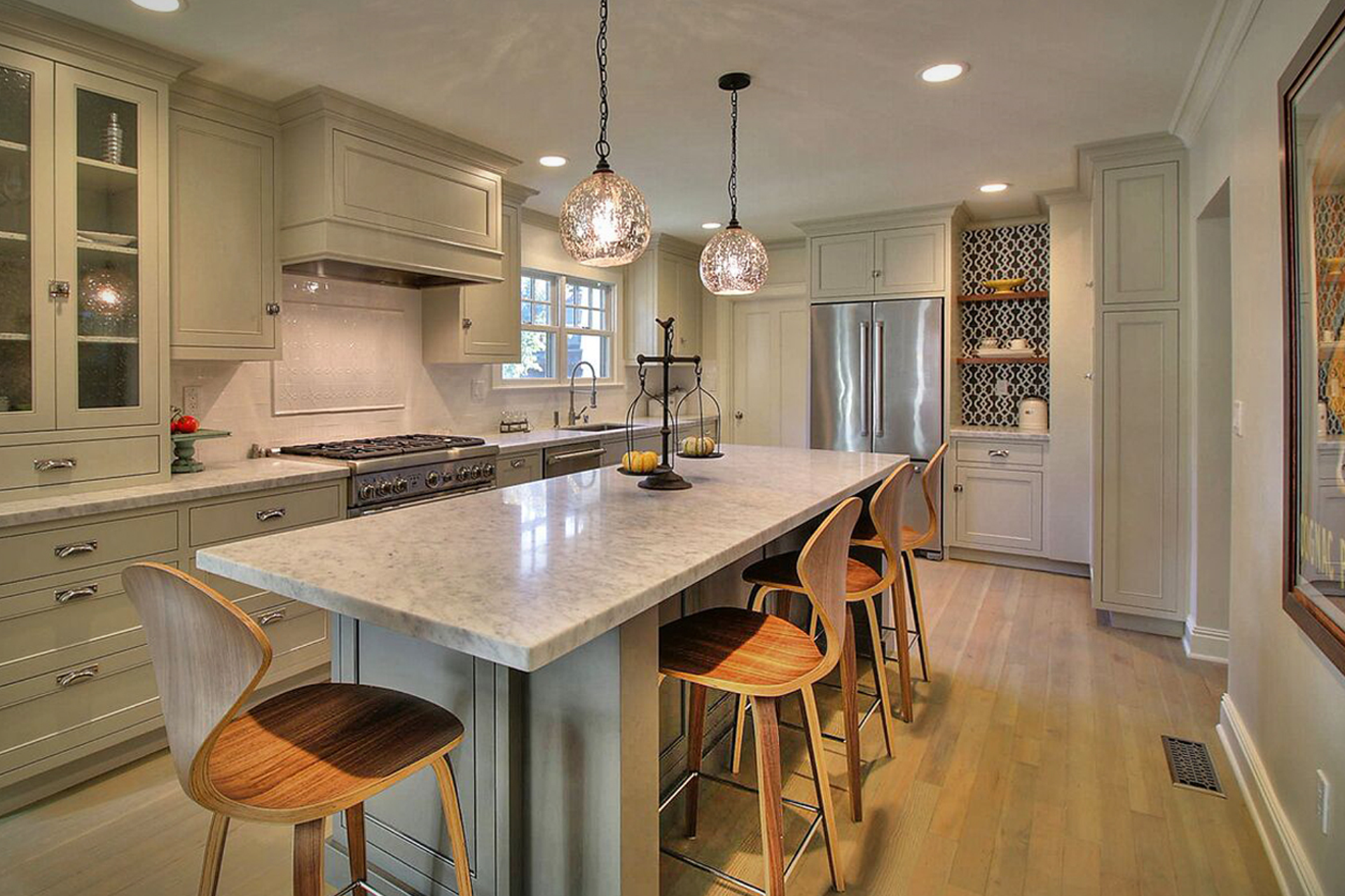 This new traditional style whole home remodel perfectly displays the refined, elegant aesthetic envisioned by our clients. Distinct features including high-end finishes and appliances, gorgeous Calcutta marble, custom whitewash floors with inlay borders, and artistic tile design all create a space that is both pristine and personal.