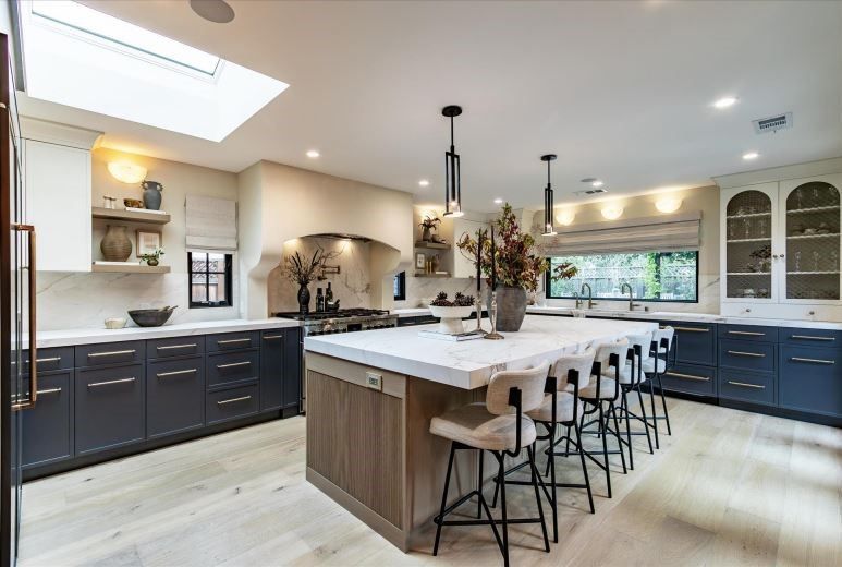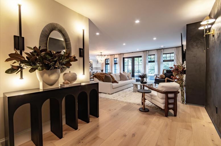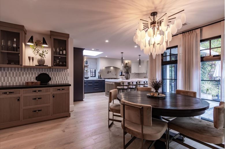 This enchanting whole home renovation thoroughly exudes depth, drama, and elegance. Each room is evocative and captivating with its exquisite finishes, breathtaking color schemes, and perfectly ambient lighting. Even functional features, such as the expansive gourmet chef’s kitchen to the thoughtfully planned home office, were all designed and built with great care and consideration for the sumptuous, moody aesthetic our clients desired