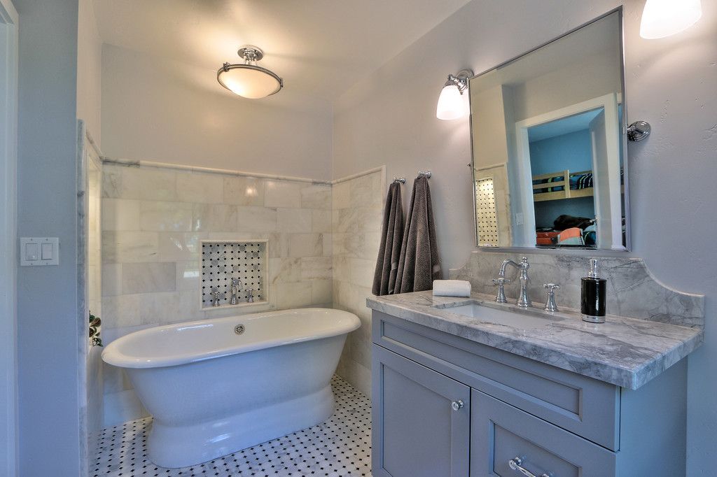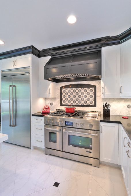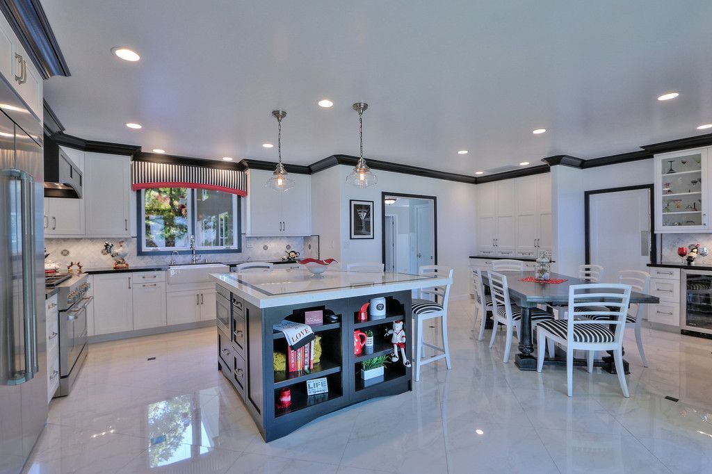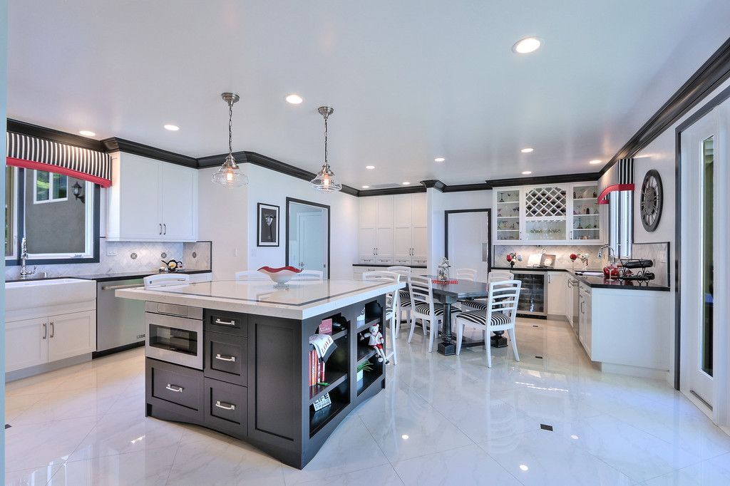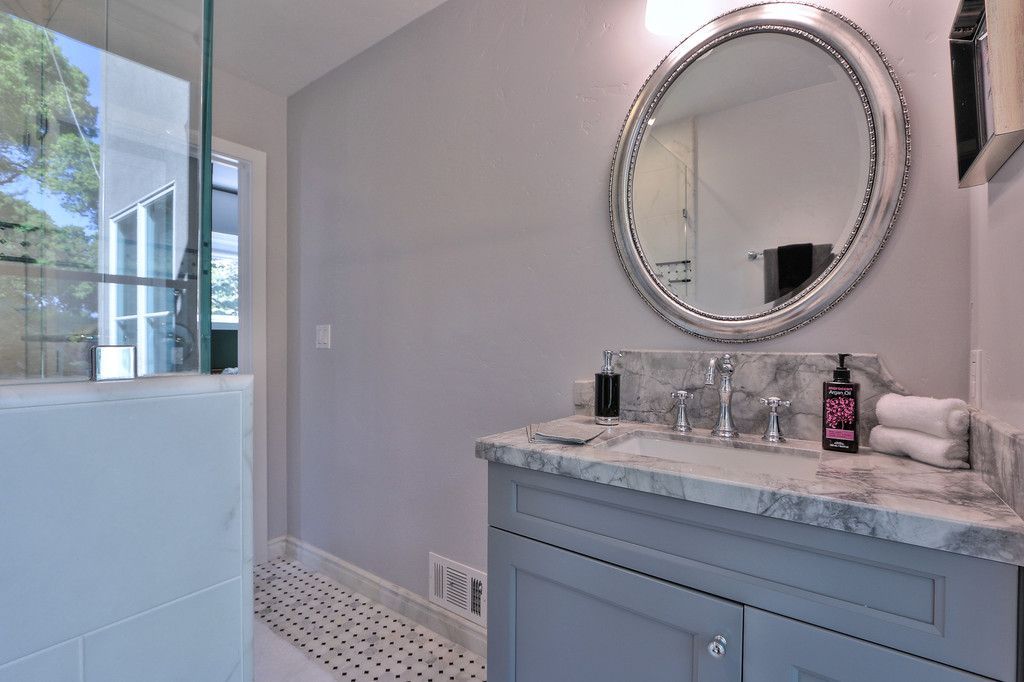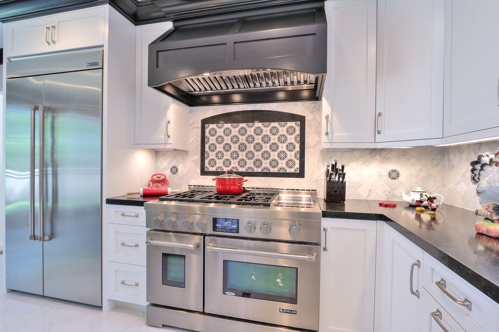 This elaborate first floor remodel included extensive kitchen, bathroom, and laundry room renovations. Structural elements were reworked to make way for our clients’ vision of a dazzling space paying gentle homage to Parisian design. The bold color scheme is dramatic yet charming and complimented by chic tile layouts and fashionable fixtures. We executed this concept so flawlessly that rather than a “welcome home” wish to our clients, it warranted a “bienvenue à la maison.”